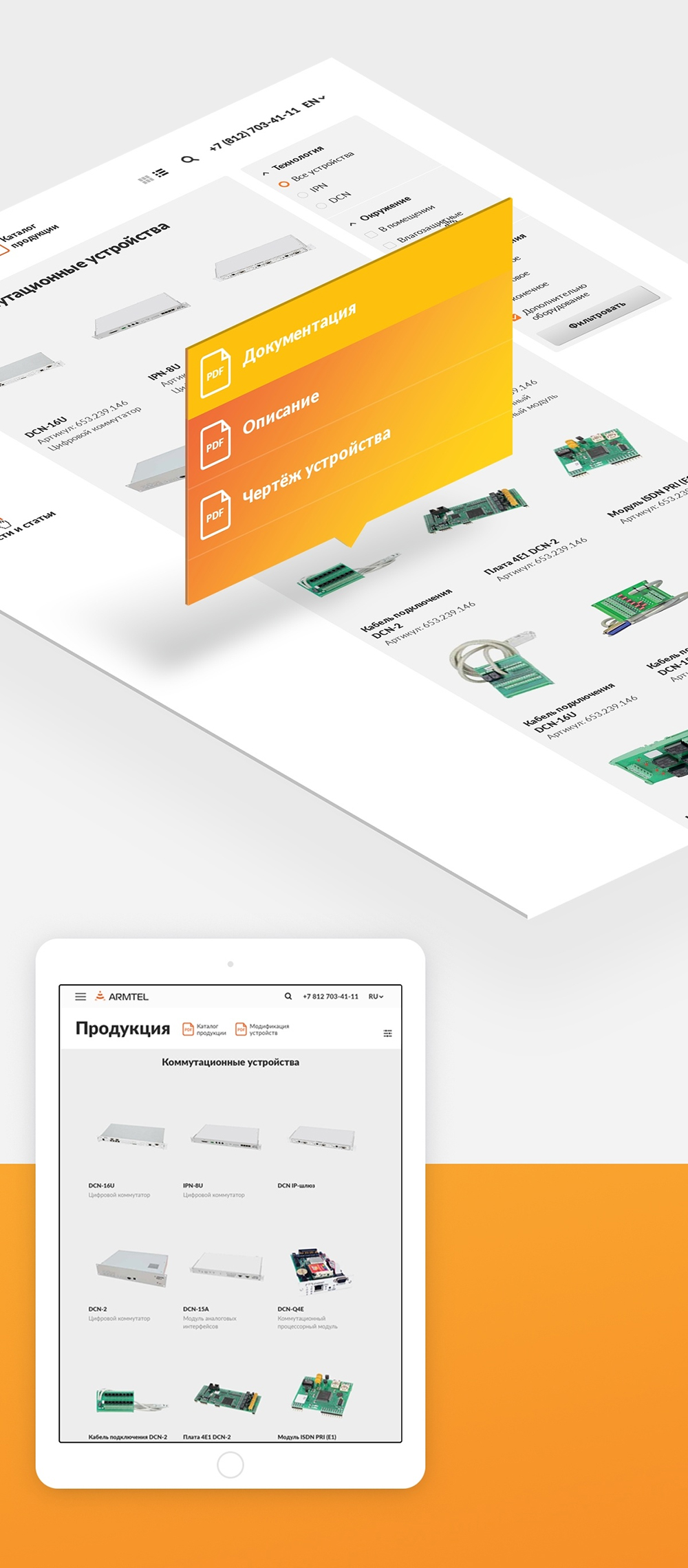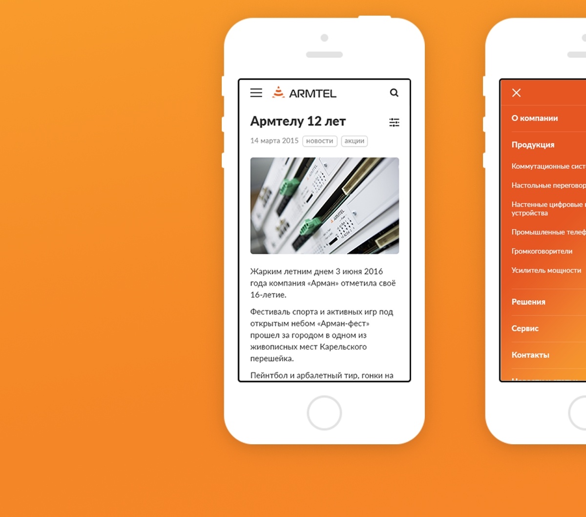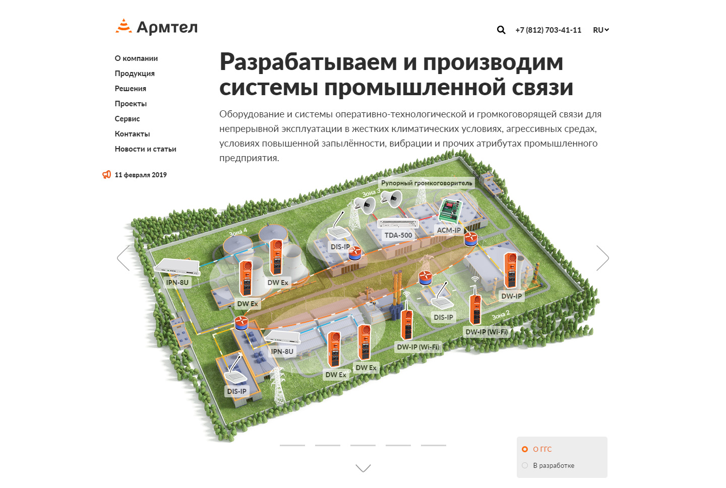 Для компании нужно было сделать редизайн сайта. Новый сайт должен был быть современным, удобным. Он должен был рассказать о миссии Армтела и представить полноценную информацию об оборудовании и возможных модификациях продукции.