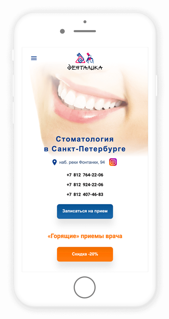 Мобильная версия сайта стоматологической