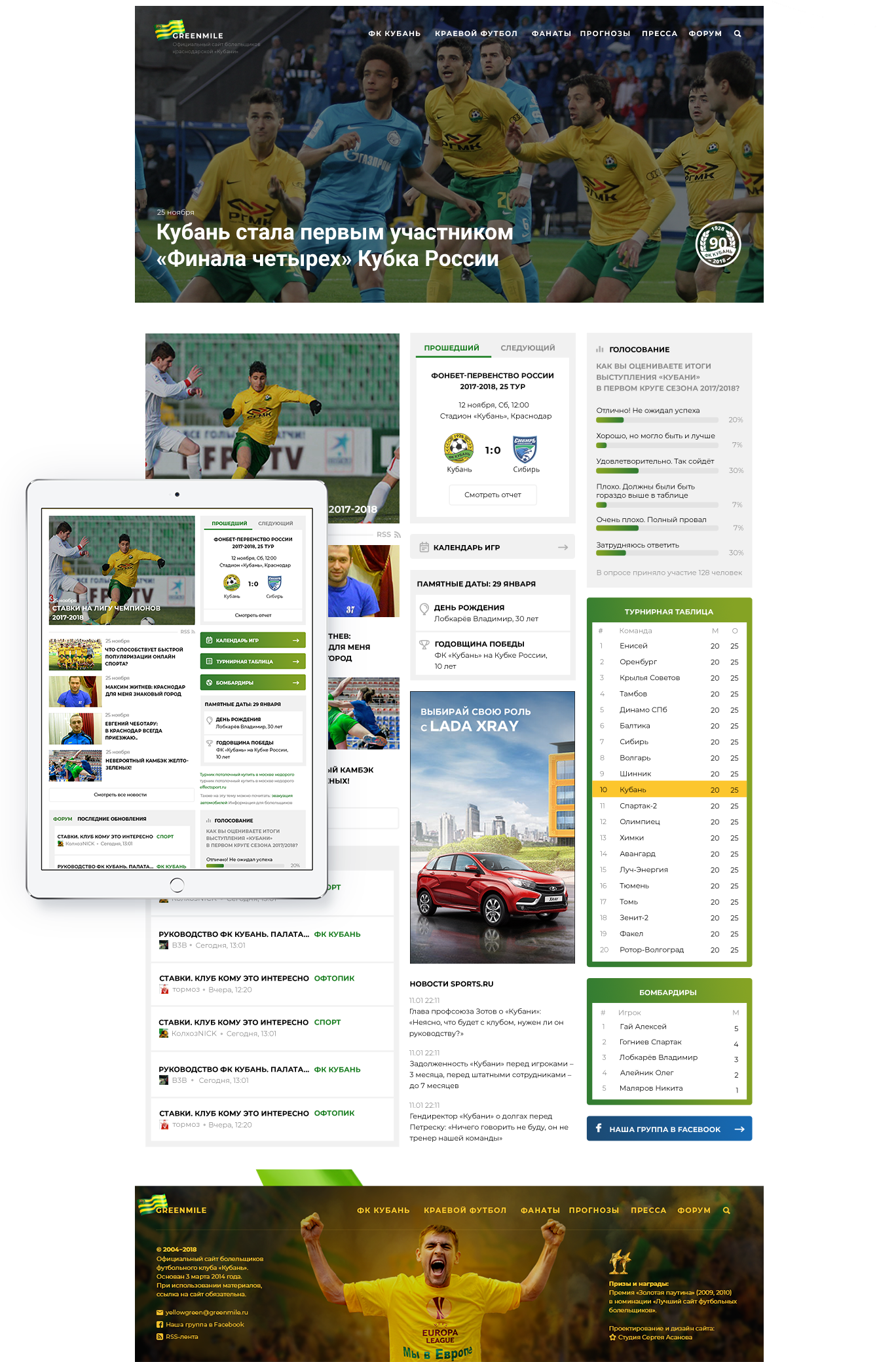 На главную страницу вынесли самые важные разделы: новости, счет, турнирную таблицу и последние сообщения форума.