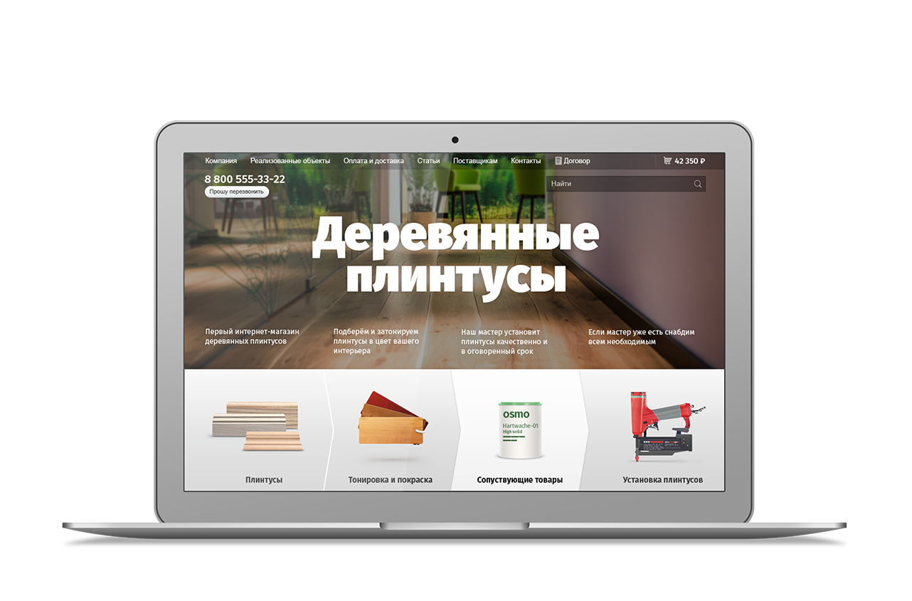 дерева. Чтобы клиенты могли подобрать плинтус не выходя из дома, мы сделали сайт с каталогом и