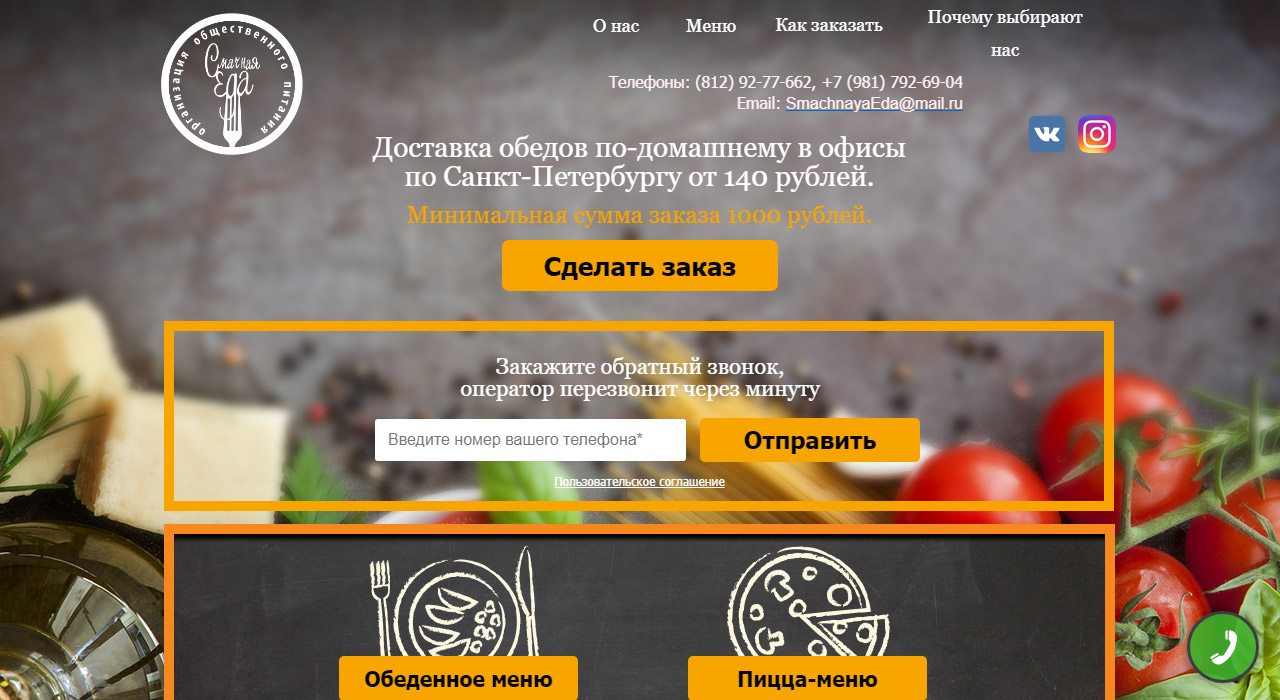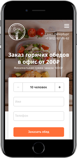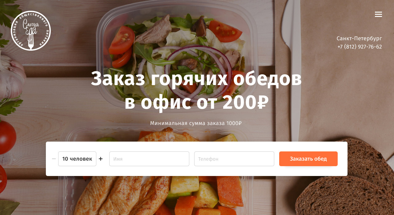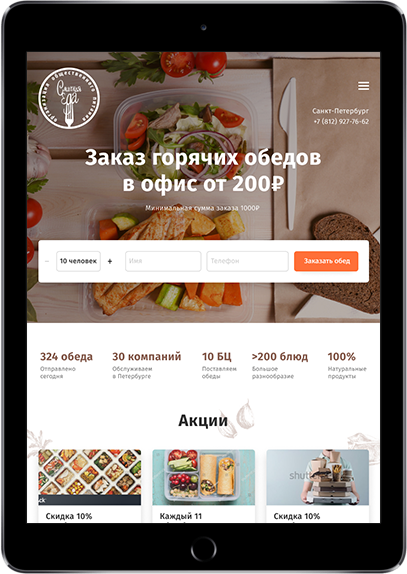 Посадочная страница сервиса доставки готовых обедов в офис.