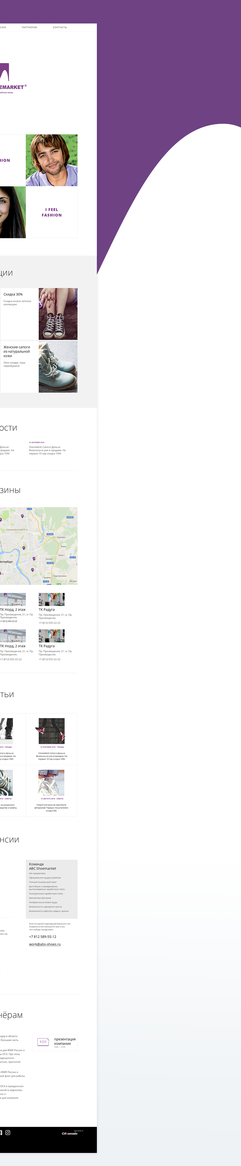 — сеть обувных магазинов в Санкт-Петербурге. Мы разработали адаптивный промо-сайт, который рассказывает о магазинах и компании.