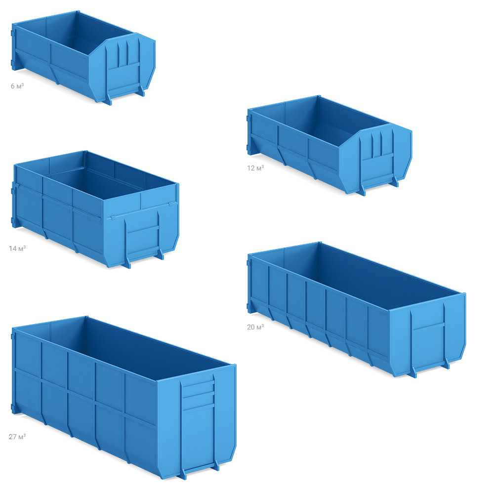Для сайта мы отрисовали 5 контейнеров от 6 до 27 кубических метров.