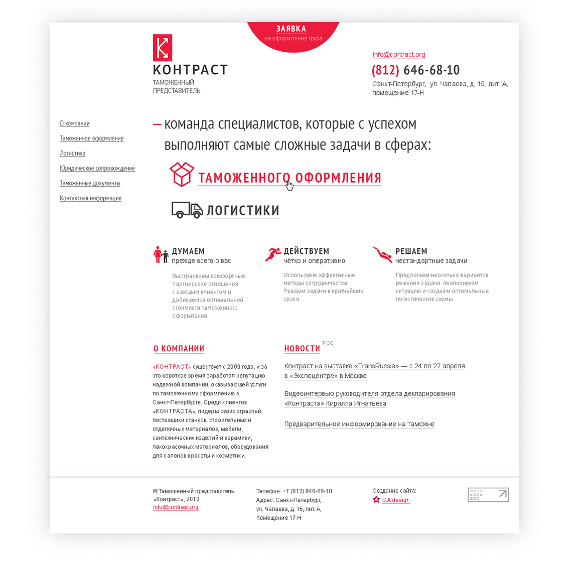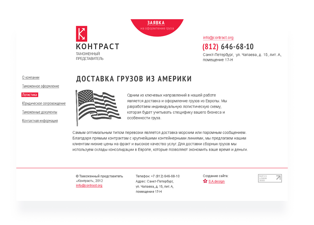 Сайт таможенного представителя «КОНТРАСТ» получился минималистичным, информативным и функциональным. Мы подробно описали основные направления деятельности компании.