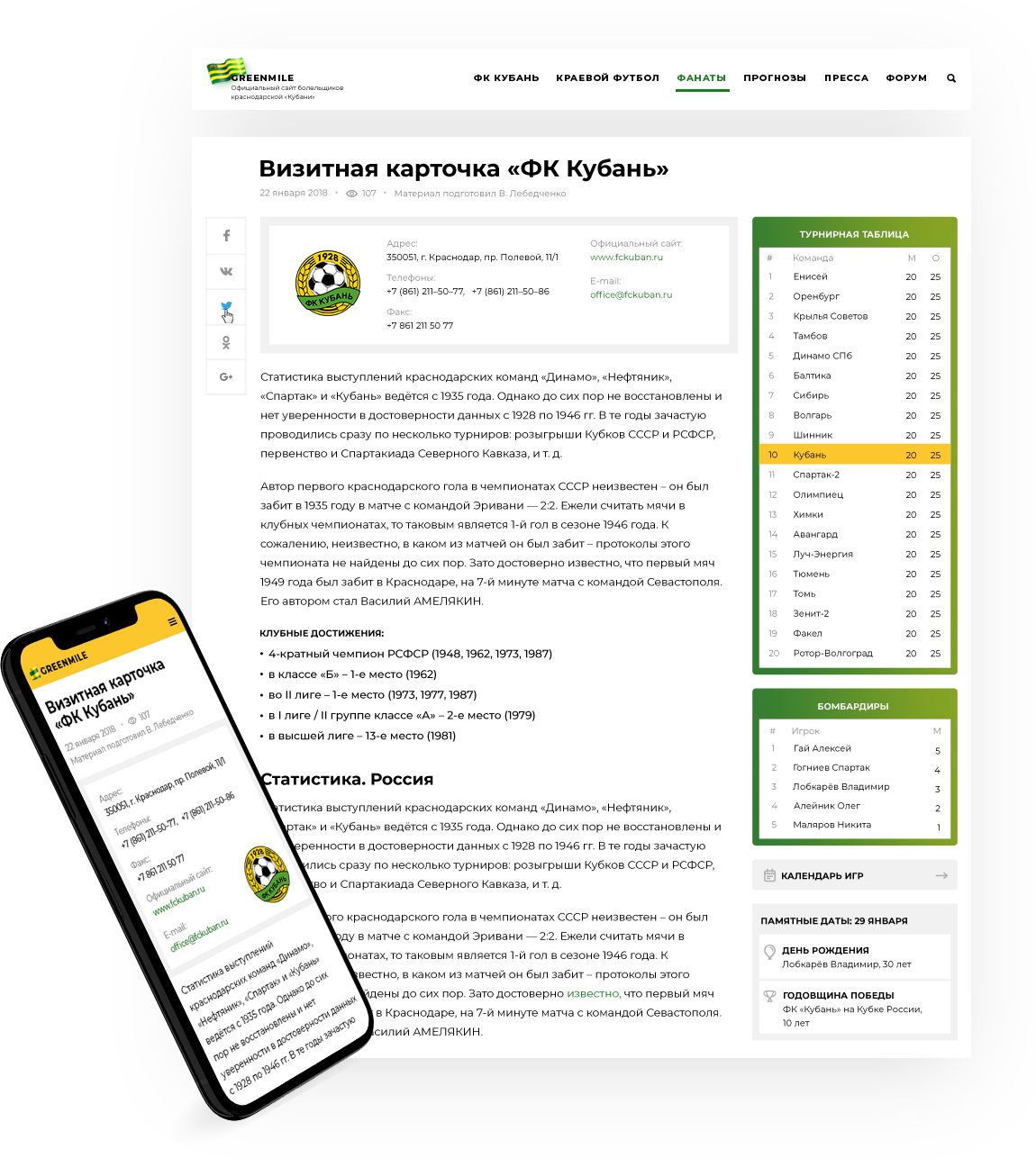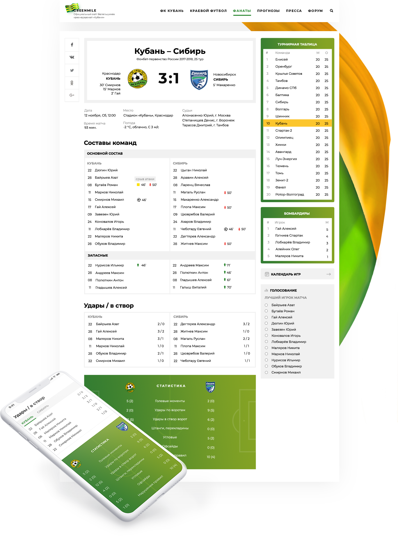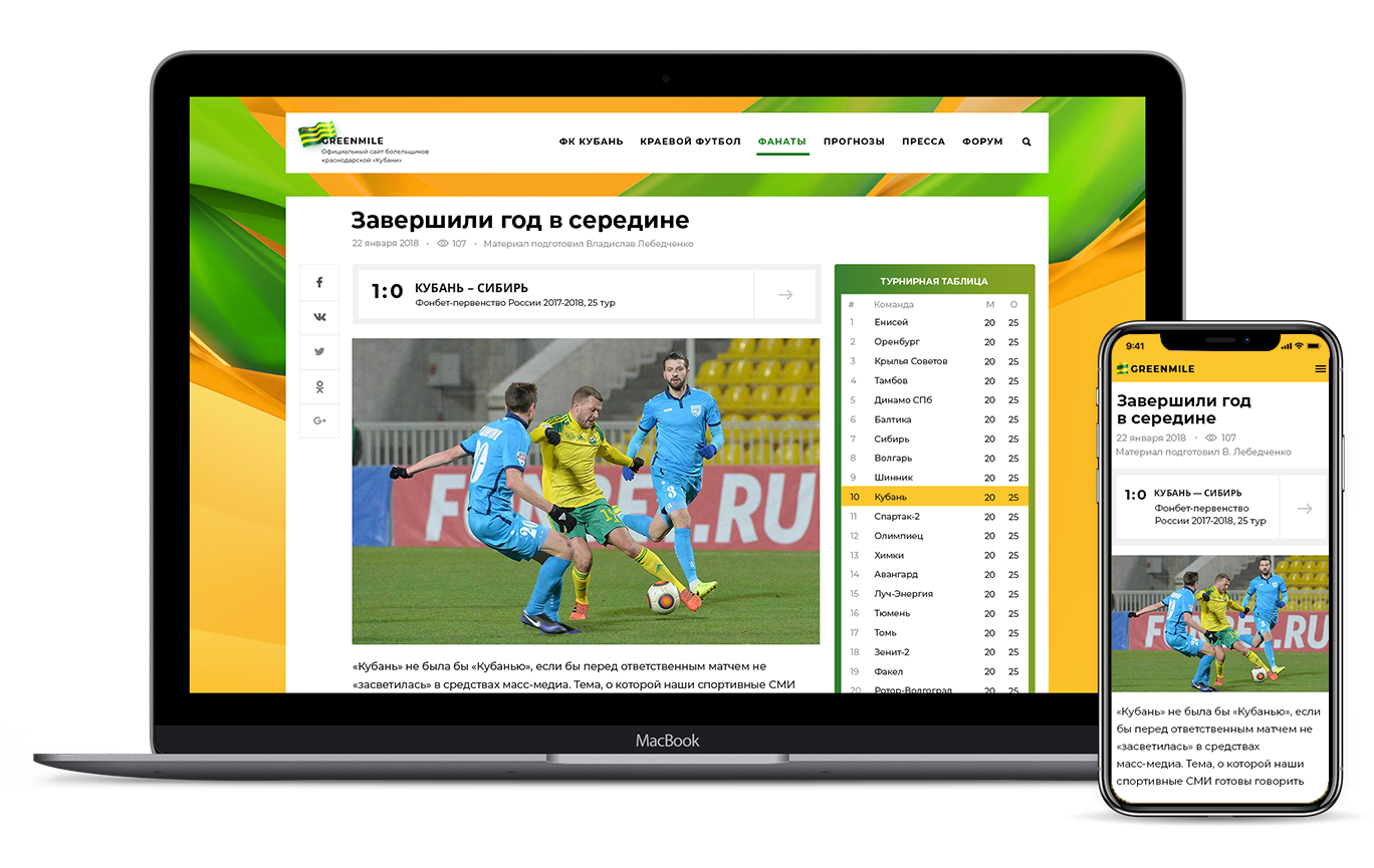 На главную страницу вынесли самые важные разделы: новости, счет, турнирную таблицу и последние сообщения форума.