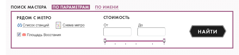 - Поиск мастера в нужном районе или в пределах определённой стоимости;