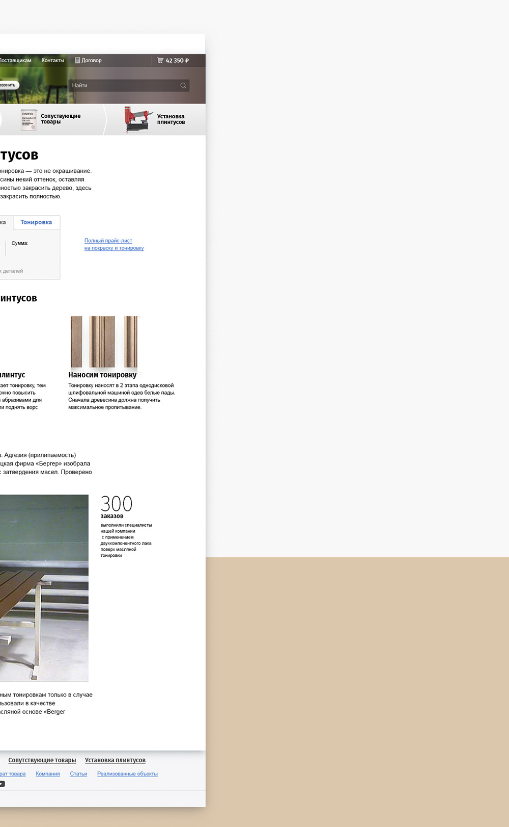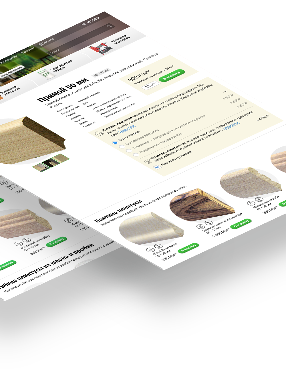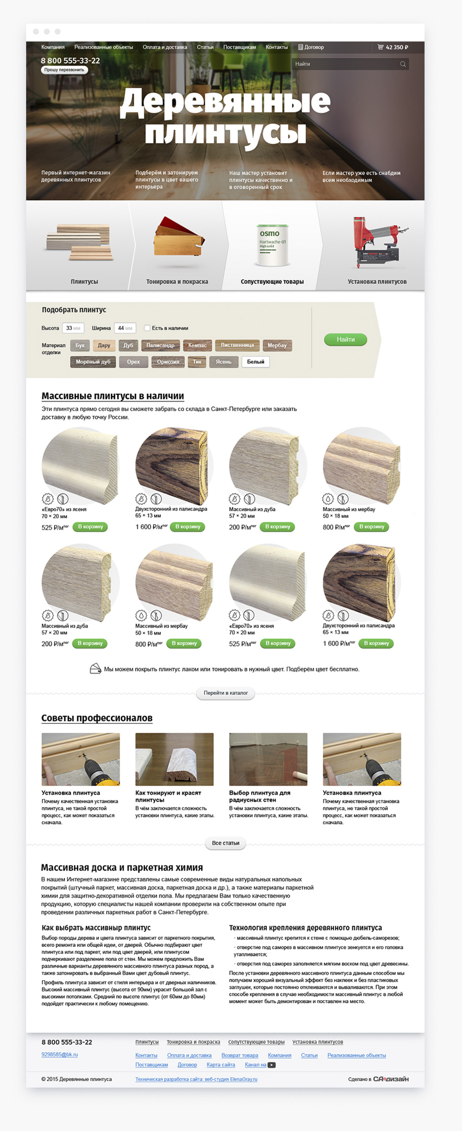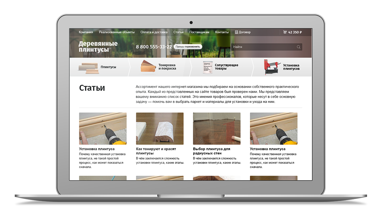 дерева. Чтобы клиенты могли подобрать плинтус не выходя из дома, мы сделали сайт с каталогом и