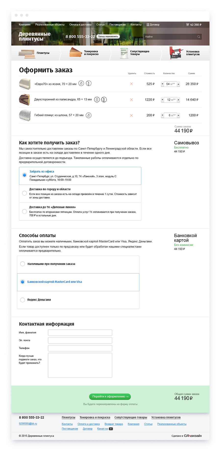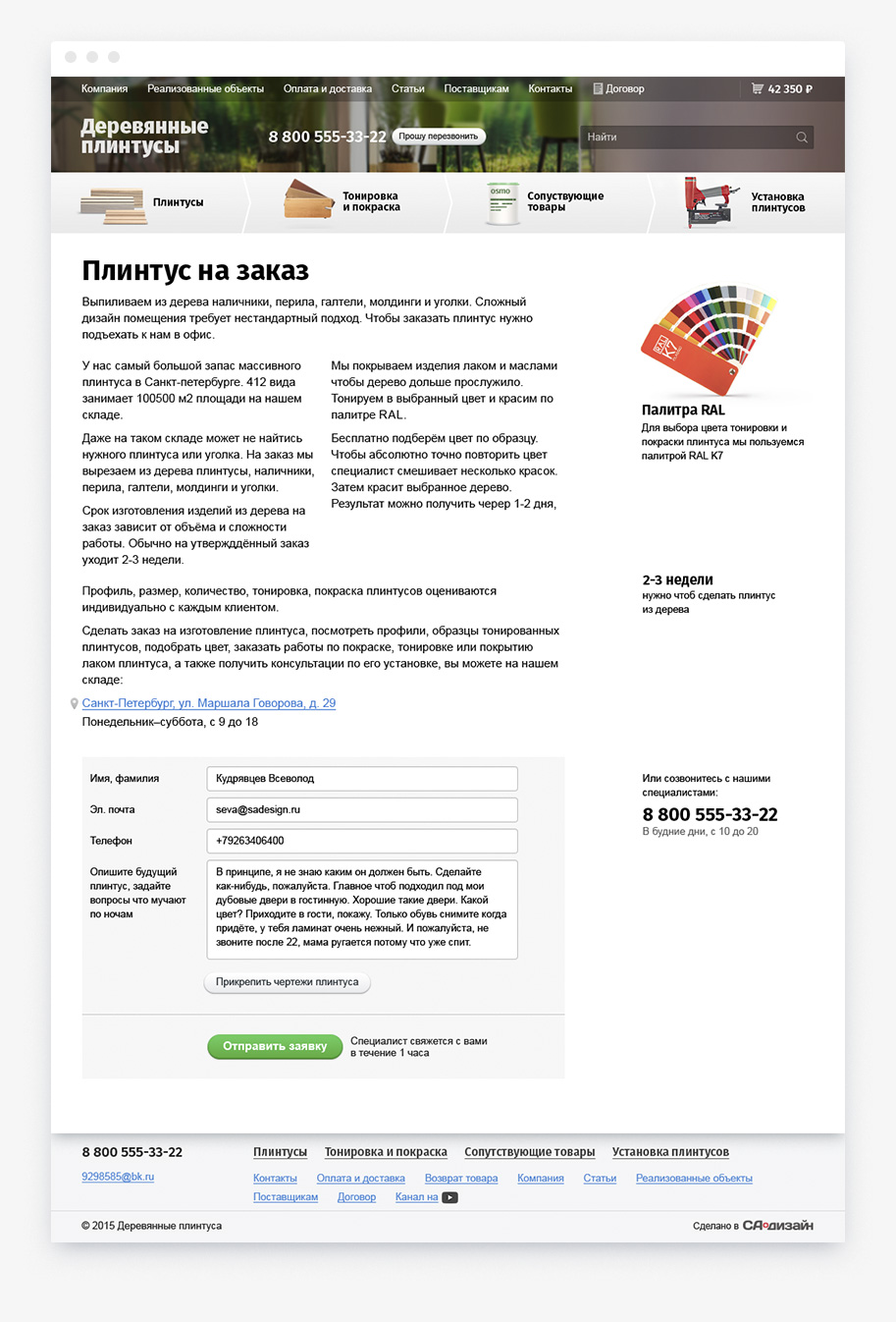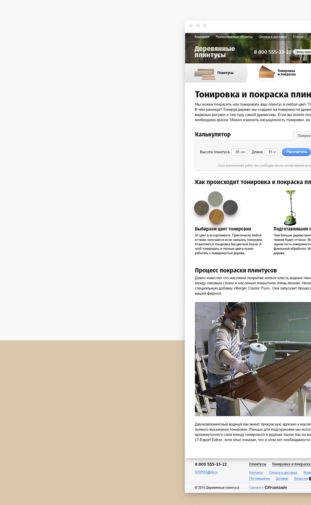 дерева. Чтобы клиенты могли подобрать плинтус не выходя из дома, мы сделали сайт с каталогом и
