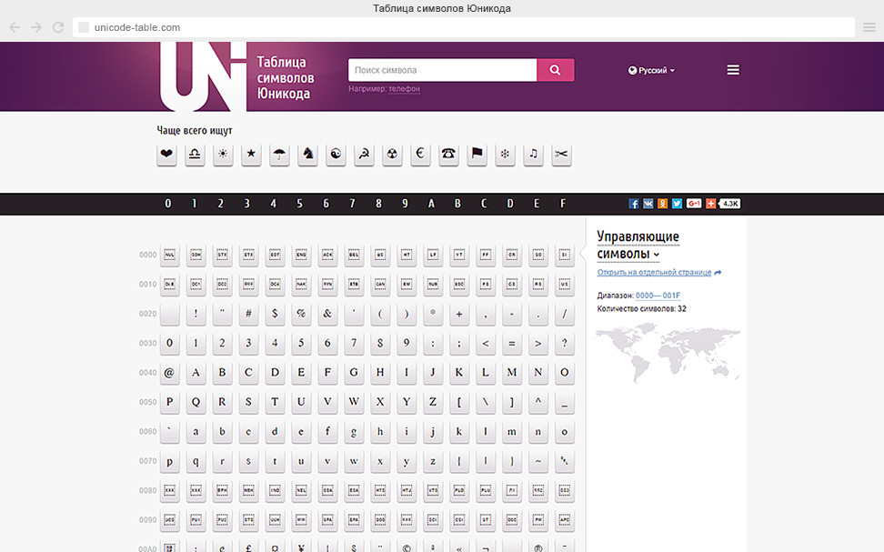 Создание и развитие энциклопедии символов, языков и алфавитов «Таблица символов Юникода»