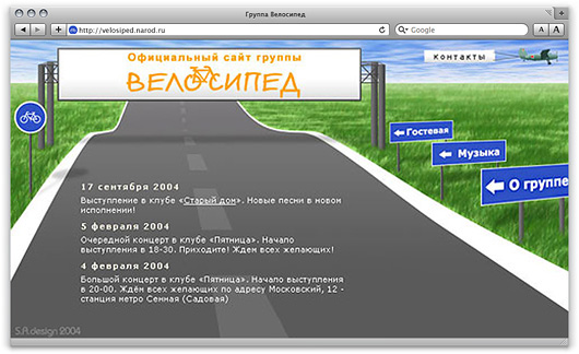Страничка рок-группы «Велосипед», содержащая анонсы выступлений, информацию о группе и тексты песен.